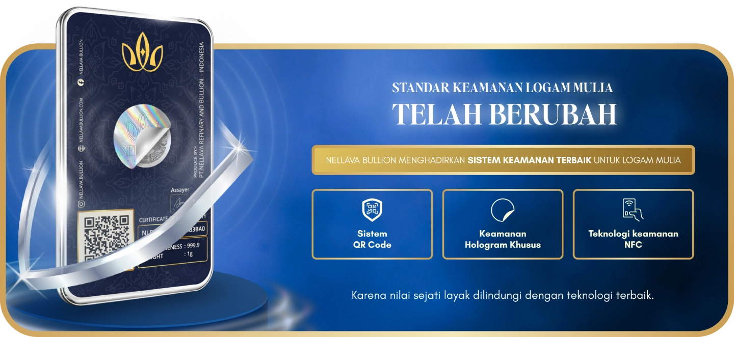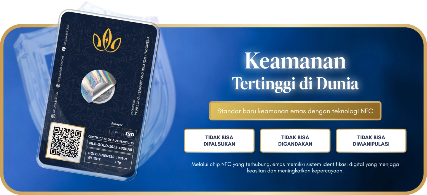 Di Nellava, kami percaya bahwa emas batangan lebih dari sekadar komoditas; emas batangan adalah penyimpan nilai yang dimaksudkan untuk bertahan lama. Itulah mengapa setiap tahap produksi kami dijalankan dengan disiplin dan standar tinggi, menghasilkan emas batangan yang memenuhi standar keunggulan yang diakui secara internasional. Dengan harga beli yang kompetitif dan nilai jual kembali yang kuat, Nellava menyediakan salah satu jalur investasi yang paling menguntungkan bagi mereka yang ingin membangun atau memperkuat portofolio mereka.